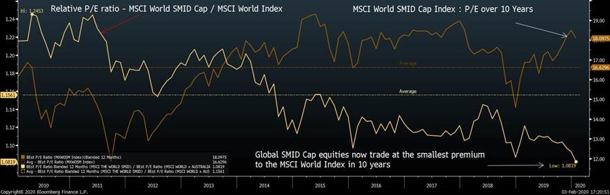 Furthermore, the global SMID universe simply has not participated in the valuation expansion that has been so prevalent with large cap global growth and IT names. The MSCI World Global SMID Cap Index is now trading at its lowest P/E premium to the MSCI World Index in 10 years (+7.8% vs +15.6% 10 year average), which is in stark contrast to the global IT sector which trades at a 33% premium to the rest of the market.
